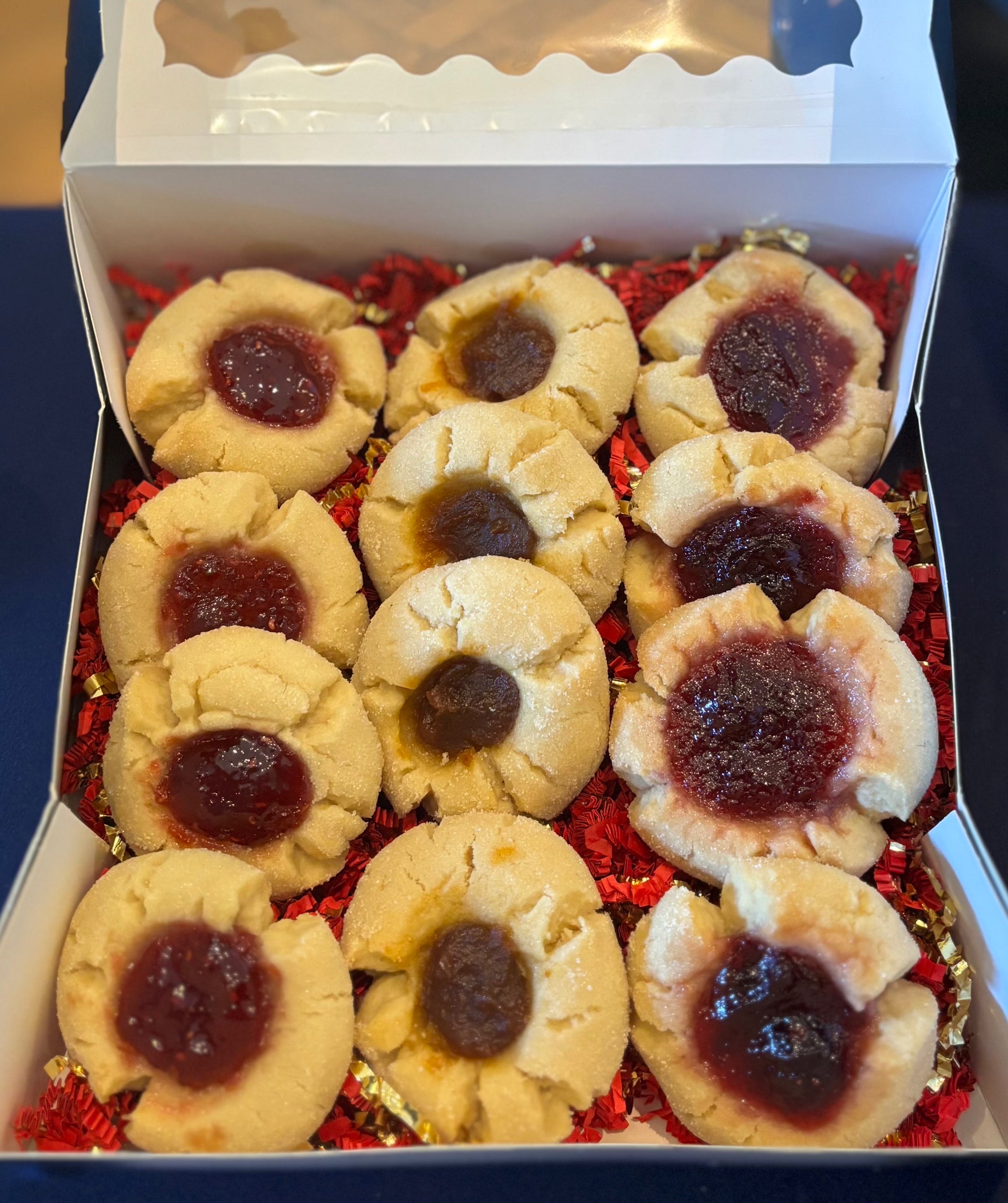 A refined twist on a nostalgic classic. Our Seasonal Thumbprints feature a soft, buttery cookie with delicately crisp edges and a melt-in-your-mouth center. Each filled with small-batch, flavor-forward jams and spreads that celebrate the best of the season from Ordinary Evelyn's.